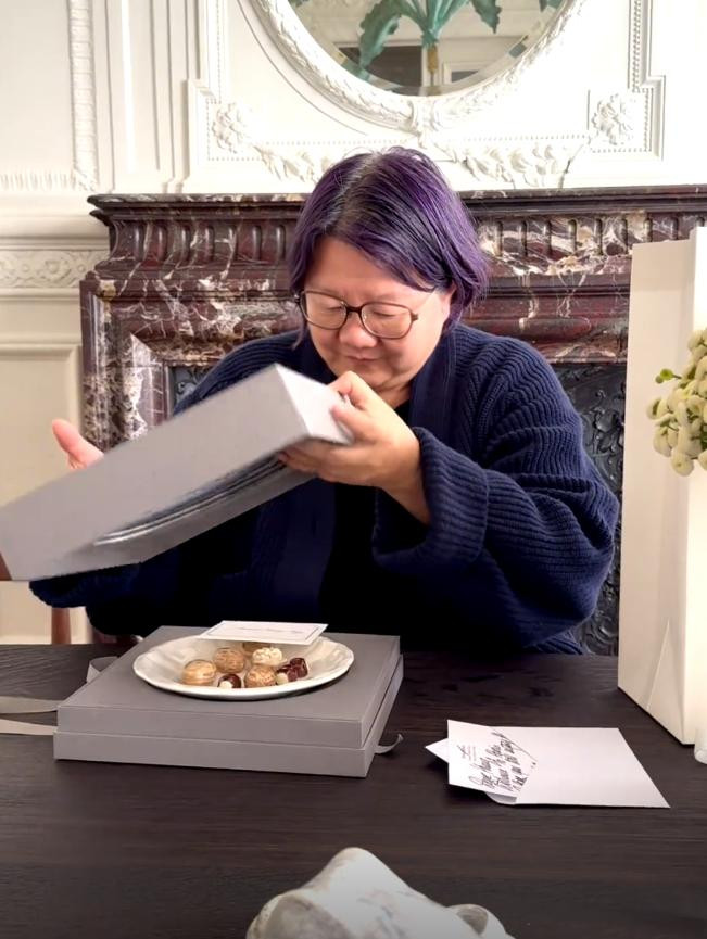 说着说着,她就想到了上次这个品牌方送的礼品,并起身去家里寻找。