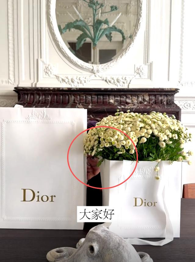 视频一开始,洪女士躲在一本书和一束花的后面。